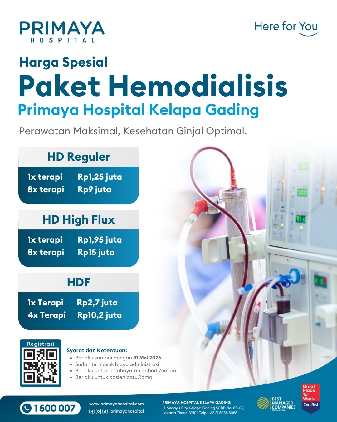 Paket Hemodialisis – Kelapa Gading Rp 1.250.000 – Rp 15.000.000Rentang harga: Rp 1.250.000 hingga Rp 15.000.000Lihat detail