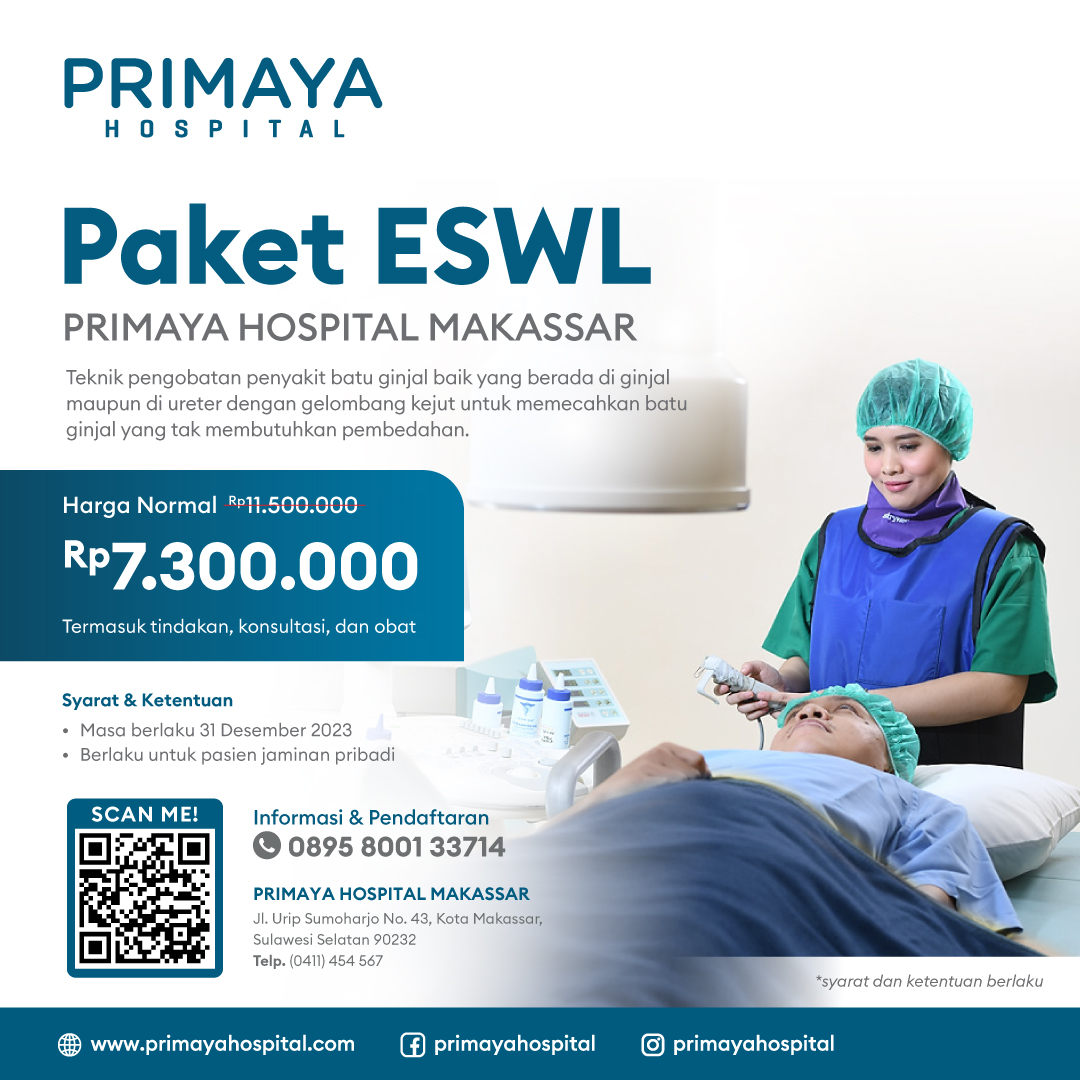 Kami mengerti bahwa masalah batu ginjal bisa sangat mengganggu dan memerlukan perawatan yang tepat. Dengan Paket ESWL kami di Primaya Hospital Makassar, kami menawarkan solusi yang efektif dan terjangkau untuk mengatasi masalah batu ginjal.